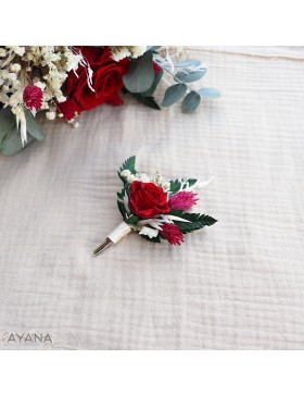 The chic and trendy accessory for groom, his witnesses or groomsmen made with dried and preserved flowers. It can also be used as a brooch for ladies.