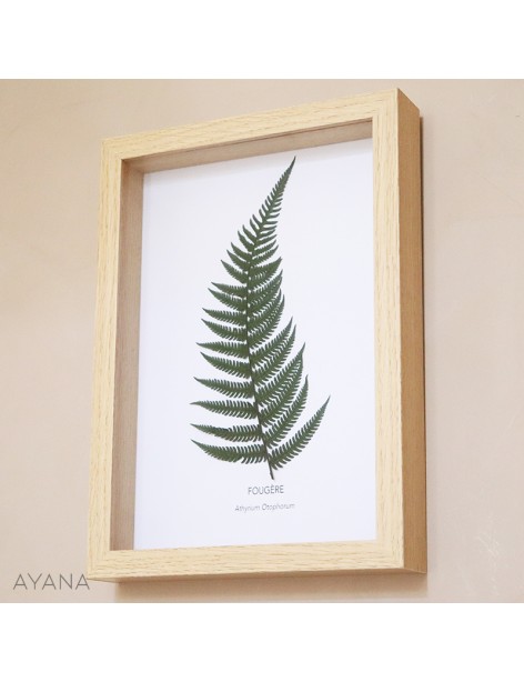 Artisanal creation made in the manner of a herbarium with real foliage of preserved fern. A natural decoration at the top of the current trend.