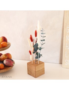Please note that for reasons of shipping convenience, the composition of dried and preserved flowers will not be delivered to you assembled as in the photograph but packaged separately from the wooden bar. All you have to do is arrange the flowers in their intended holes as in our photographs or give free rein to your creativity.