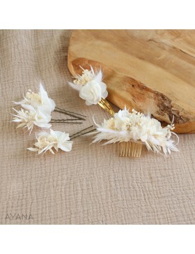 A hair clip made with pure white natural flowers to elegantly complete your outfits every time.