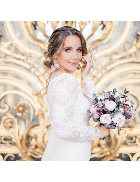 La pivoine symbole d'amour et de bonheur fait rayonner les bouquets printaniers par ses tons pastels et ses formes douces. Fleurs plébiscitée par de nombreuses mariées, elle est souvent l'invitée vedette des mariages au printemps. Ce délicieux bouquet rond réalisé en véritables pivoines prolonge la trop courte saison de cette fleur exceptionnelle.