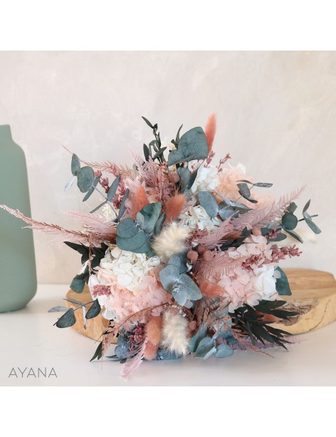 Vous pourrez profiter durablement de ce bouquet réalisé en fleurs séchées et stabilisées sans risque de le voir se faner.