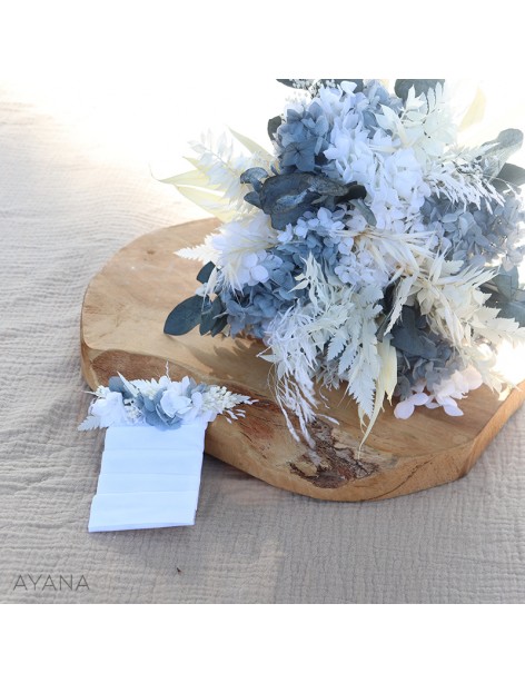 Pour un ensemble parfaitement harmonieux, découvrez également le bouquet fleurs séchées "Saint-Florent", les peignes "Séréna", les boucles d'oreilles "Séréna", les épingles cheveux "Séréna" ou encore la boutonnière classique "Sérénité".