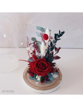 Arrangement moderne sous cloche de fleurs naturelles séchées et stabilisées pour chasser la grisaille hivernale et illuminer votre déco. Ce sera également une jolie idée de cadeau pour Noël, la Saint Valentin ou pour toute autre belle occasion..