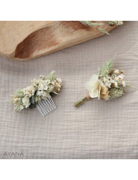 Les douces nuances de notre collection OMBELINE allant de l'ivoire au beige en passant par le crème se parent de délicieuses touches de vert pastel. Une collection tendre et printanière qui séduira les âmes bohèmes en quête d'authenticité auprès de la bienveillante et réconfortante nature. Notre collection OMBELINE comprend différents accessoires coordonnés qui ajouteront une touche unique et raffinée dans tous les beaux moments de votre vie: mariage, fiançailles, EVJF, baptême, anniversaire...