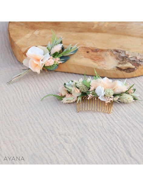 La collection COLINE comprend différents accessoires réalisés minutieusement en fleurs séchées et stabilisées. Ils complèteront avec élégance et délicatesse vos tenues dans tous les beaux moments de votre vie: mariage, fiançailles, EVJF, baptême, anniversaire...